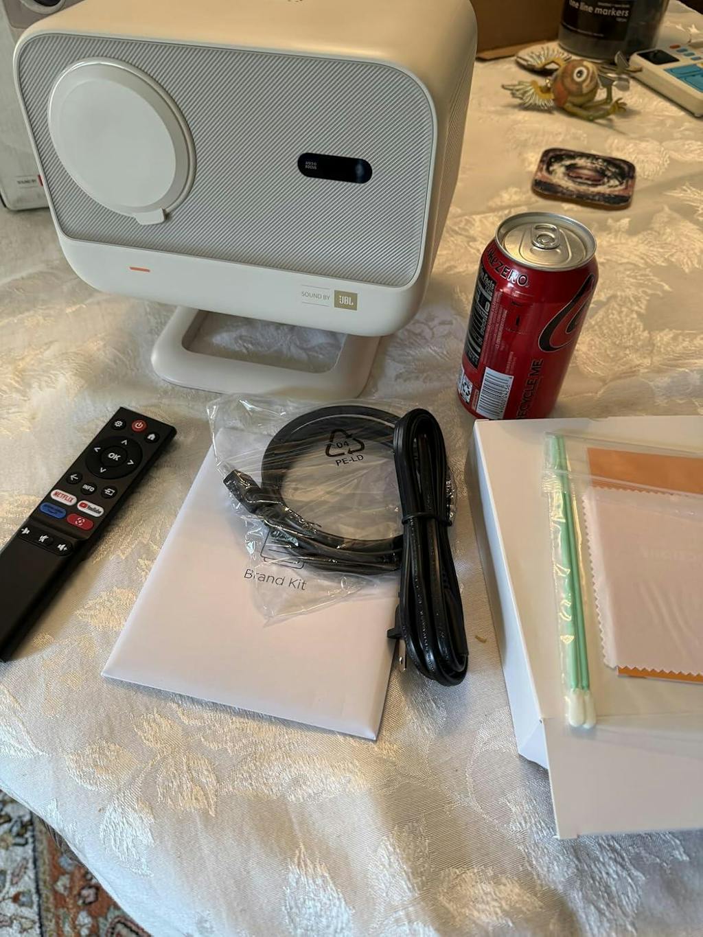 | What's in the Box | TV Dongle QSG & FAQ HDMI Cable Projector Remote Control Cleaning Cloth K300s Power Adapter K300s Projector |