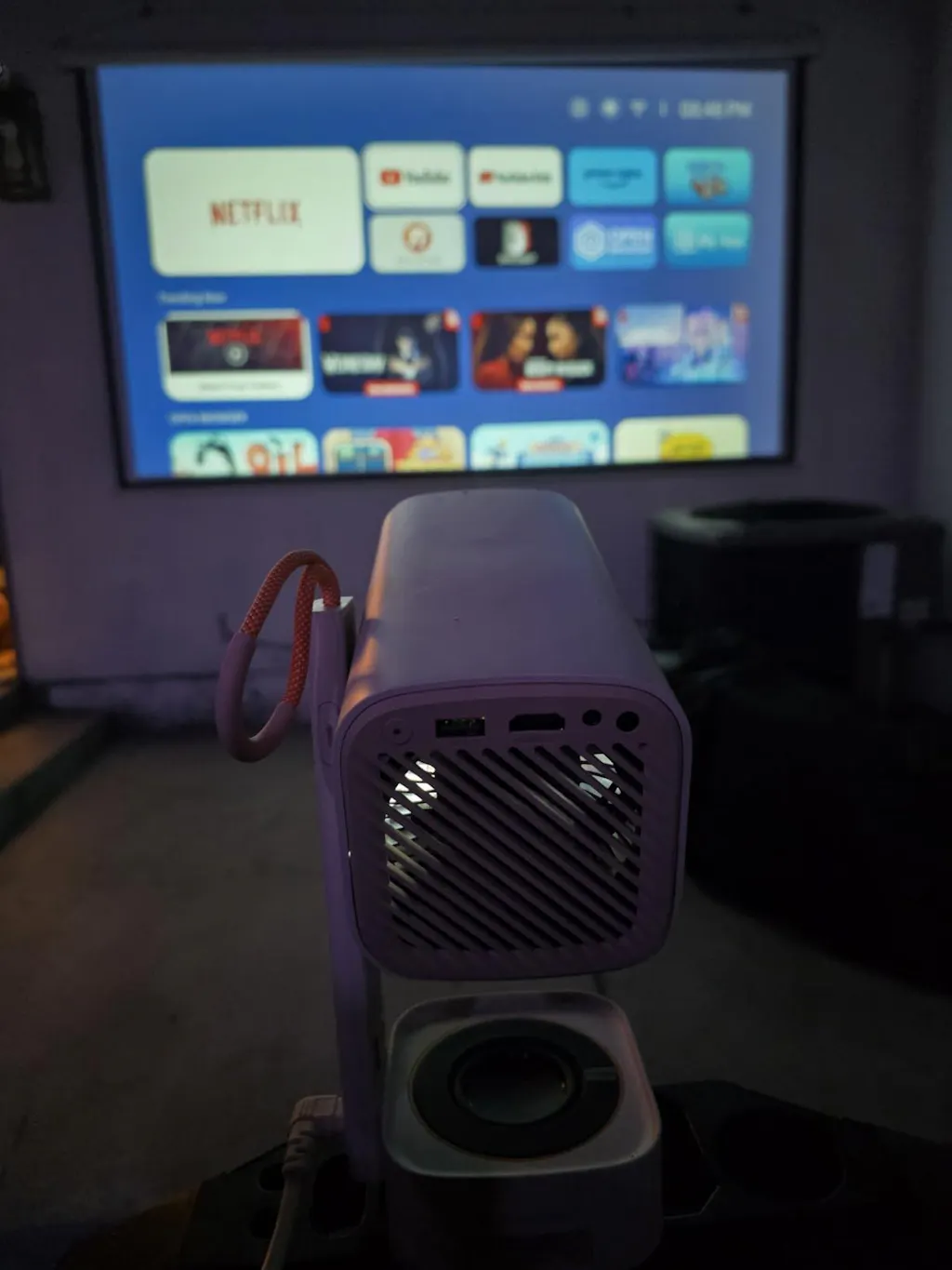 Tak. T1 Pro ma wbudowany, oficjalnie licencjonowany inteligentny system. Zawiera preinstalowane aplikacje, takie jak Netflix, YouTube i Prime Video, umożliwiając strumieniowe przesyłanie ulubionych treści bezpośrednio przez Wi-Fi bez konieczności korzystania z zewnętrznego telewizora lub laptopa.